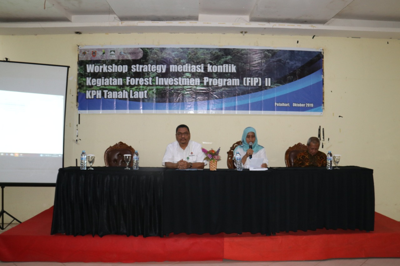 16 - 17 Oktober 2019. Pelaksanaan kegiatan 3.1.5.B. Workshop Strategi Mediasi Konflik di KPH Tanah Laut. Dihadiri 82 orang perwakilan aparat desa, pemerintah daerah, kelompok tani hutan dan penegak hukum terkait dengan area yang diindikasi terdapat konflik sumberdaya alam di wilayah KPH Tanah Laut. Narasumber kegiatan: