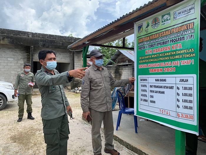 Kunjungan kerja Kepala Dinas Kehutanan Provinsi Sulawesi Tenggara melihat pemberdayaan masyarakat binaan KPH Dampelas Tinombo di KTH Harapan Kita Desa Karya Mukti Kecamattan Dampelas Kabupaten Donggala, berupa produk getah karet.