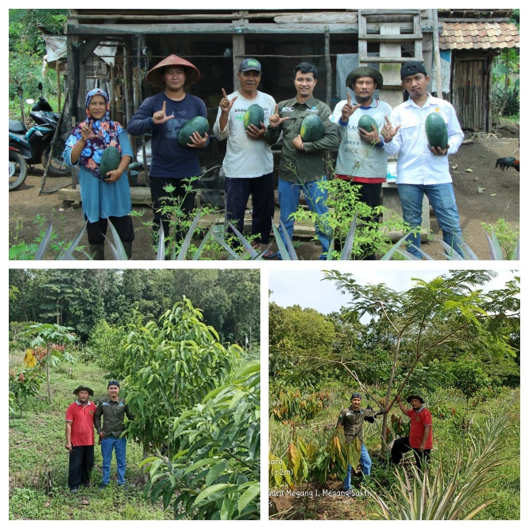 Monev Agroforestry dan Panen Semangka di Lahan Agroforestry LPHD Muara Megang I. Program atas pendampingan KPH Lakitan dan dukungan Proyek FIP 2. Beberapa jenis tanaman dengan pola Agroforestry ditanam di lahan LPHD Muara Megang I, antara lain: karet, bambang lanang, petai dan kakao dengan tanaman sela nanas, sedangkan tanaman semusim ditanam semangka
